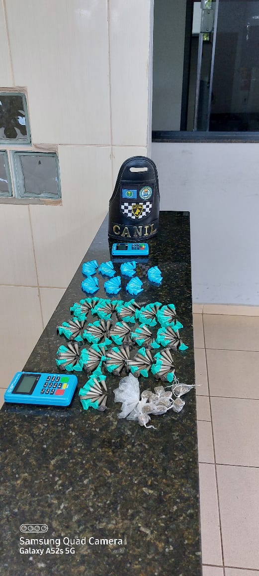 Segundo informações, o Canil estava em patrulhamento, quando avistou um sujeito pulando o muro de um terreno. Os guardas abordaram o sujeito, mas com ele foi localizado somente um maço de cigarros . Foi realizado trabalho de faro com a K9 Índia que logrou êxito em localizar 229 pinos de cocaína, 10 de maconha e 2 maquininhas de cartão. Todo o material foi encaminhado à Central de Polícia Judiciária e apreendido.