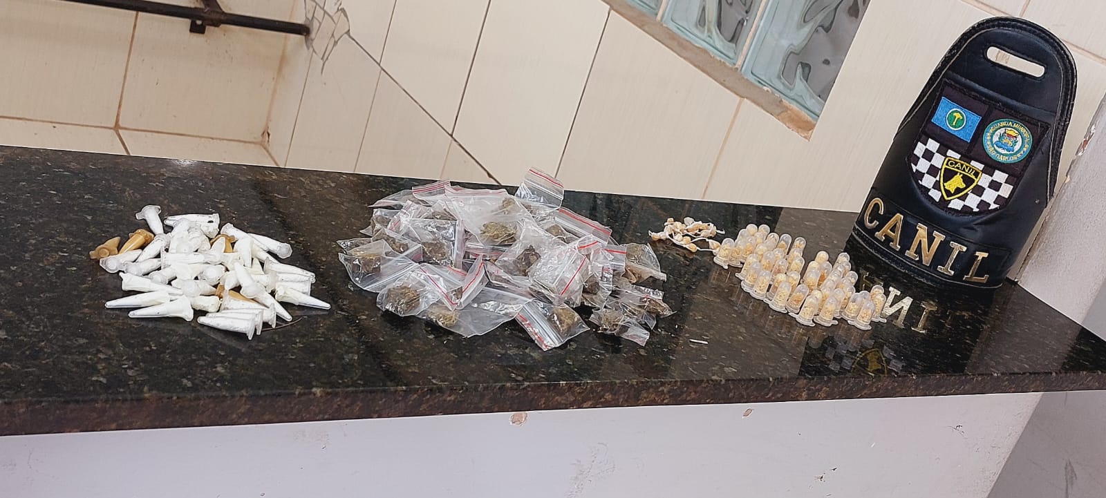 Segundo informações, um sujeito estava na via pública, quando viu a viatura do Canil saiu correndo. A K9 Índia encontrou uma sacola contendo 45 pinos de cocaína, 22 pedras de crack, 66 porções de maconha e 48 tabletes de crack. As drogas foram encaminhadas para a Central de Polícia Judiciária, onde foram apreendidas. Cabe a DISE ( Delegacia de Investigações Sobre Entorpecente) investigar e prender o dono das drogas.