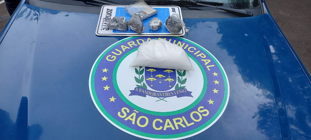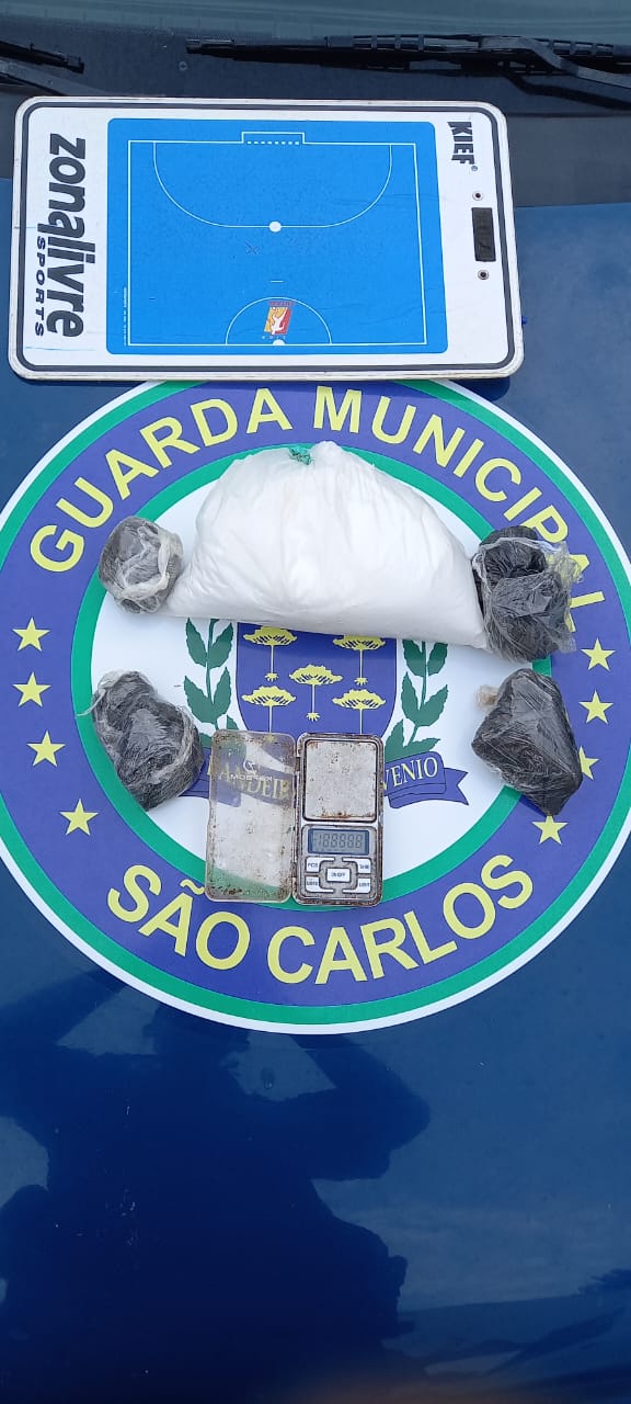 A Guarda Municipal apreendeu drogas nesta tarde de terça-feira, 24 de outubro de 2023, na Rua Luiz Massom, bairro Botafogo, São Carlos-SP.