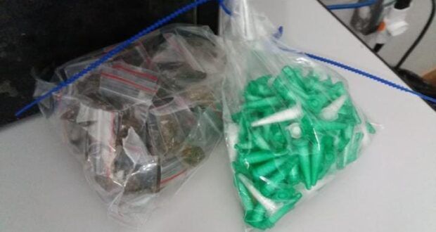 Em varredura pelo local, a guarnição logrou êxito ao localizar uma sacola plástica contendo 146 pinos de cocaína e 40 porções de maconha.