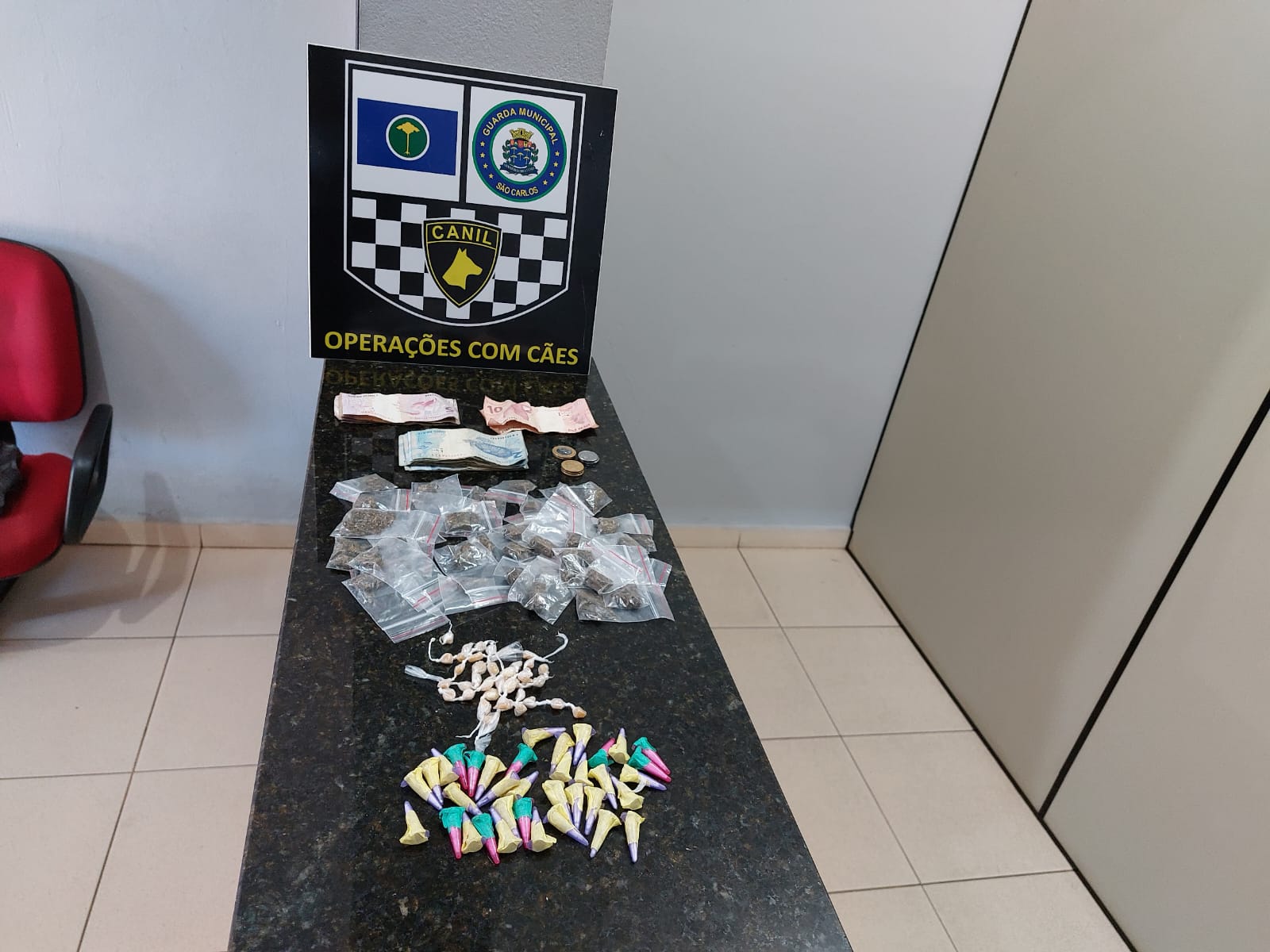 De acordo com informações, o Canil da GM estava em patrulhamento, quando indivíduos saíram correndo. Fora utilizado o trabalho de faro com a K9 Índia, que logrou êxito em localizar uma sacola contendo, 36 ependorfs com cocaína, 41 pedras de crack ,  36 invólucros de maconha e R$ 80,00. A ocorrência foi encaminhada para a Central de Polícia Judiciária, onde as drogas foram apreendidas.