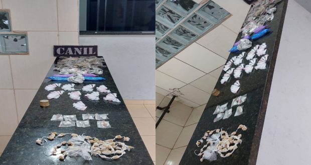 De acordo com informações, a equipe estava em patrulhamento preventivo, momento que viu um suspeito sair correndo. Em um terreno baldio a equipe logrou êxito em localizar debaixo de uma telha uma sacola contendo, 58 pedras de crack, 111 invólucros de maconha, 88 pinos de cocaína , 07 bolinhas de haxixe e 10 reais em moedas. Tudo foi encaminhado para a Central de Polícia Judiciária e apreendido.