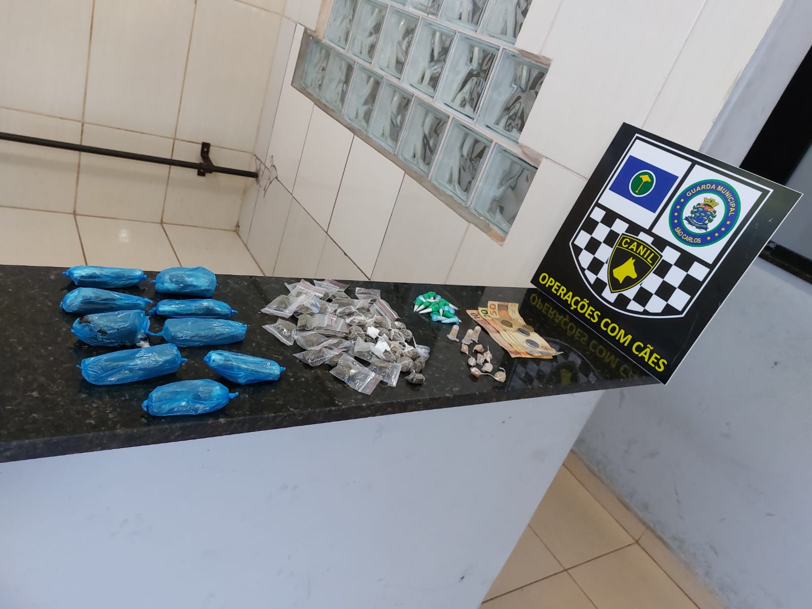 Devido à suspeita de tráfico de entorpecentes pelo local, fora utilizado o trabalho de faro com a K9 Índia que logrou êxito em localizar uma sacola contendo, drogas e dinheiro.    O material localizado foi apresentado na Central de Polícia Judiciária, onde foi apreendido.