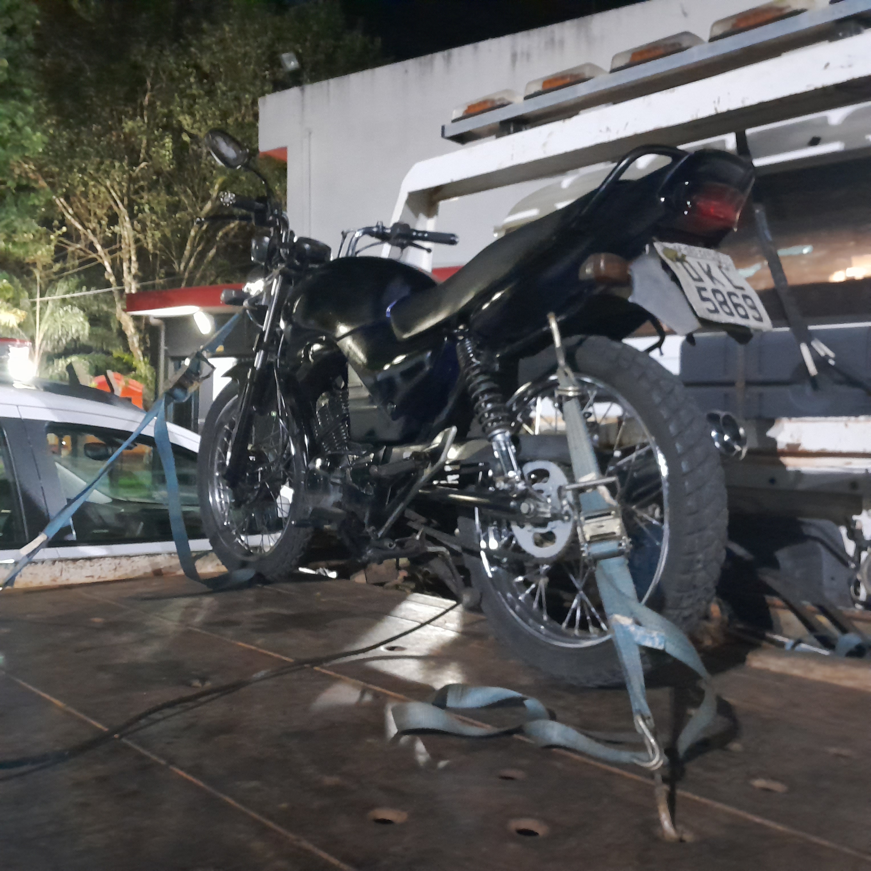 Uma moto de procedência duvidosa foi apreendida pela Guarda Municipal na noite de segunda-feira, 24-04-2023, no CDHU, bairro Vila Isabel, São Carlos-SP.