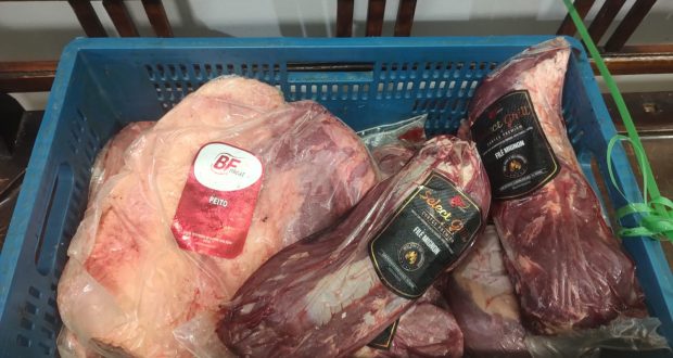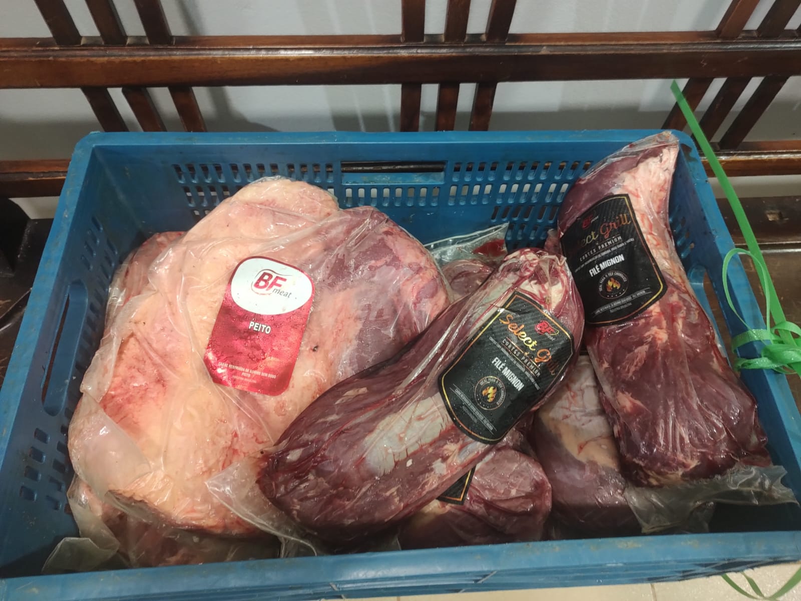 De acordo com informações, uma equipe estava em patrulhamento preventivo, momento que avistou três suspeitos carregando uma caixa em uma bicicleta. Um saiu correndo, mas dois foram abordados. Na caixa foram localizadas 9 peças de carne ( 7 filé mignon e 2 de ponta de peito).