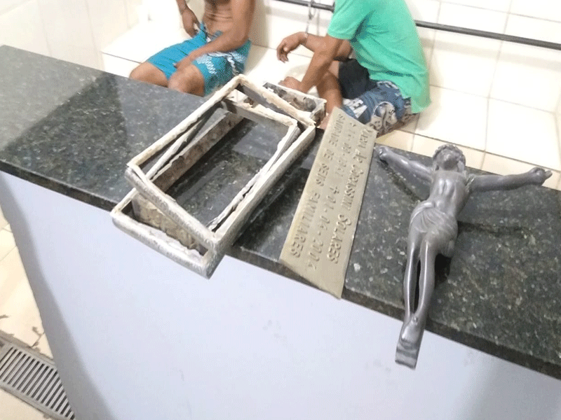 As equipes da GM tomaram conhecimento do fato através do vídeo monitoramento. Os suspeitos foram detidos e várias peças furtadas do interior do cemitério apreendias. Um dos indivíduo estava com uma bicicleta.