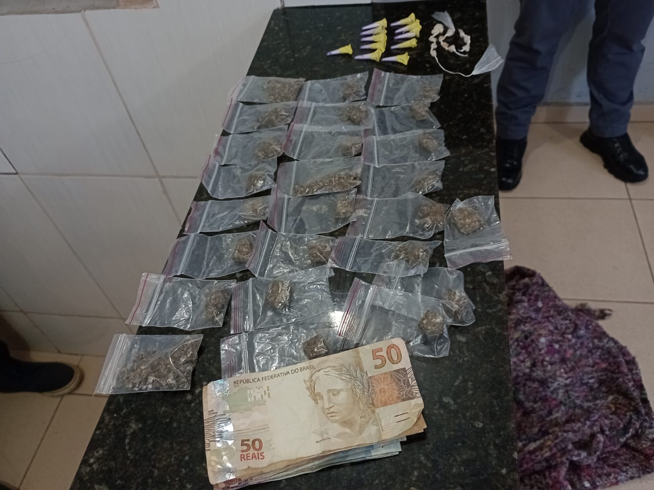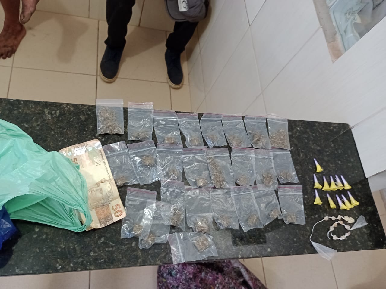 De acordo com informações, eram por volta das 7h20, uma equipe da Guarda Municipal estava em patrulhando pelo local, quando se deparou com M.S, de 26 anos, o qual estaria mexendo em uma sacola. Ele foi abordado. Na sacola foram localizados 17 pedras, 11 pinos de cocaína e R$ 157,85. O sujeito disse que estava assumindo o turno de venda de drogas. Ele foi encaminhado para a Central de Polícia Judiciária, onde ficou à disposição da justiça.