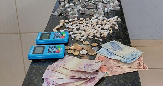 A K9 ÍNDIA logrou êxito em localizar em vários pontos nas proximidades mais drogas. Ao todo foram apreendidos 99 ependorfs de cocaína, 44 invólucros de maconha, 136 pedras crack, 2 maquininhas de cartão Power point mini chip e R$57,00. A ocorrência foi encaminhada para a Central de Polícia Judiciária, mas até o momento da publicação desta matéria, a situação do detido não havia sido definida.
