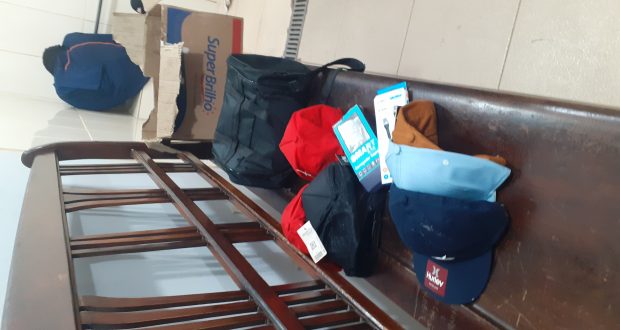 Segundo a GM, o sujeito arrombou a porta da barraquinha número 13, furtou 7 bonés, 2 carregadores de celular e uma mochila.