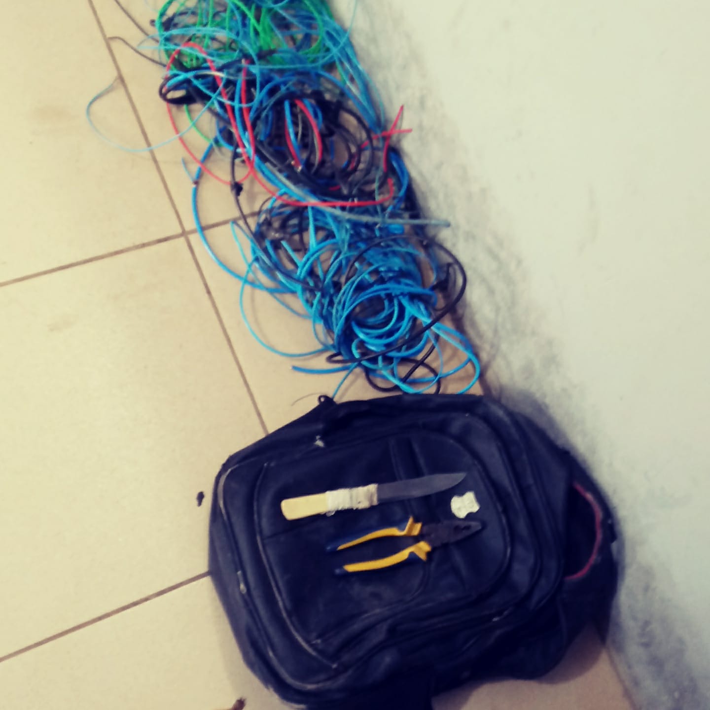 De acordo com informações, vizinhos escutaram barulho e acionaram a GM. Viaturas foram para o local e localizaram A.C.P, de 42 anos, escondido no forro da casa. Foi dado voz der prisão ao suspeito, o qual pegou uma faca e resistiu à prisão. A GM deteve o meliante e com o mesmo foi localizada uma mochila com fios furtados. A ocorrência foi encaminhada para a Central de Polícia Judiciária, onde o detido foi autuado em flagrante e recolhido ao Centro de Triagem de São Carlos.