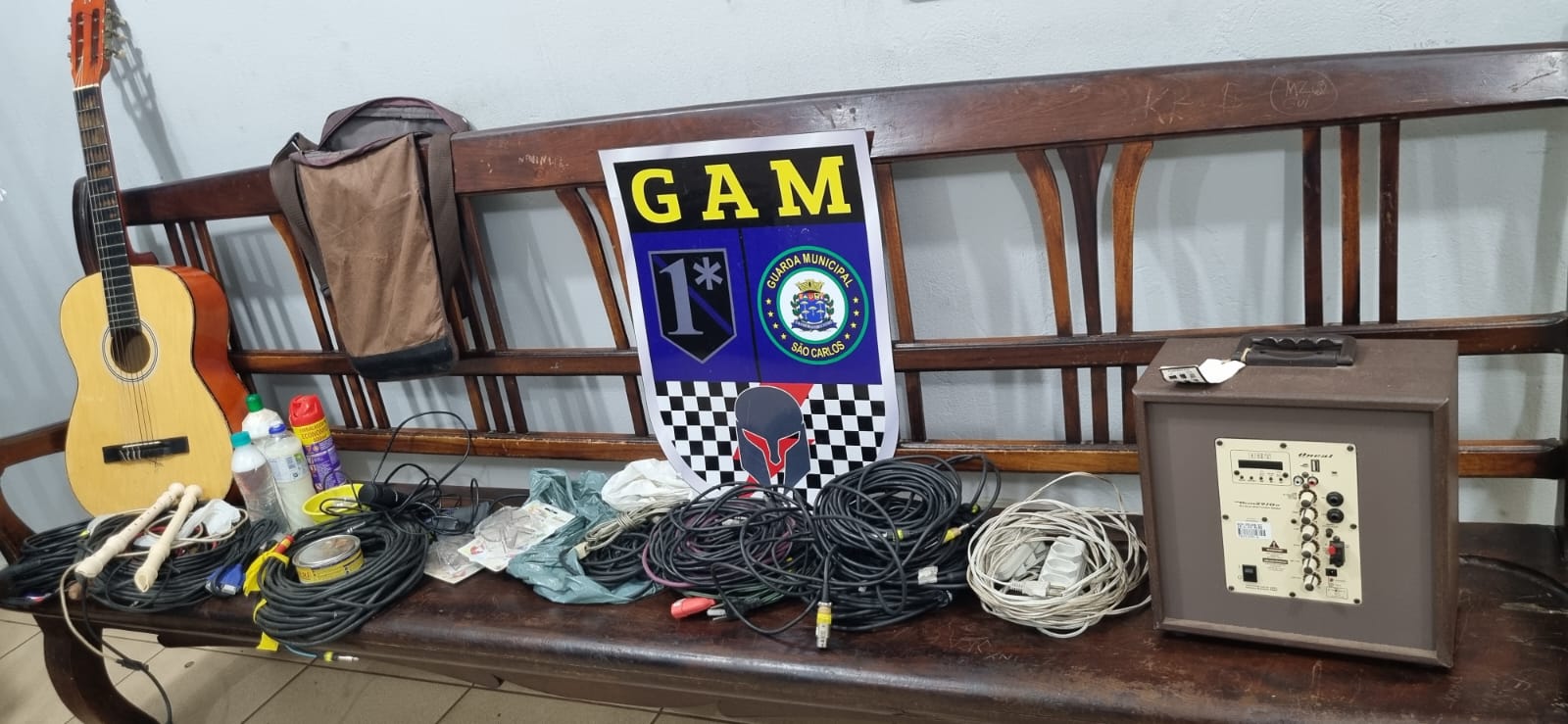 A Guarda Municipal deteve um homem nesta madrugada de segunda-feira, 9 de janeiro de 2023, acusado de praticar furto em uma escola de música situada na Rua Abel Giongo, bairro Vila Faria, São Carlos-SP.