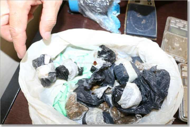 Segundo informações, o denunciante disse que todos os dias um homem adentra ao mato com uma sacola nas mãos.  Como próximo o local, existe ponto de tráfico a GM foi fazer a averiguação e encontro as drogas e os objetos.