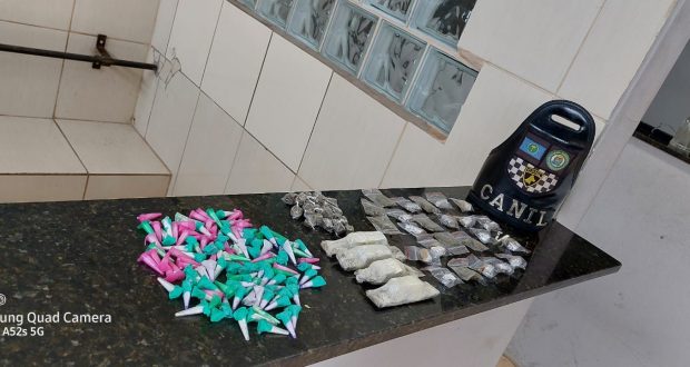 Na caixa de correio e em um cano de saída de águas pluviais, foram encontrados 111 pinos de cocaína, 48 invólucros com substância de maconha e 4 tabletes também de maconha. As drogas foram apreendidas na Central de Polícia Judiciária.