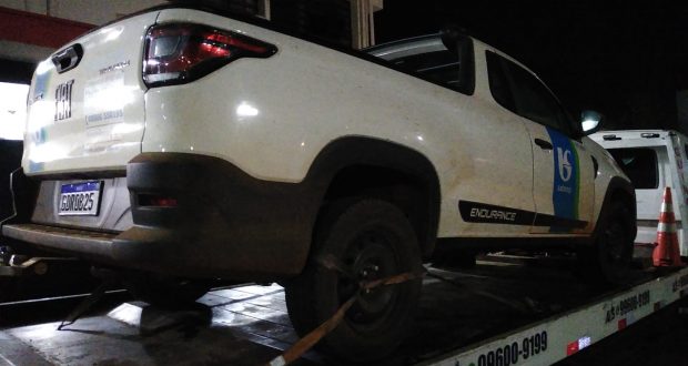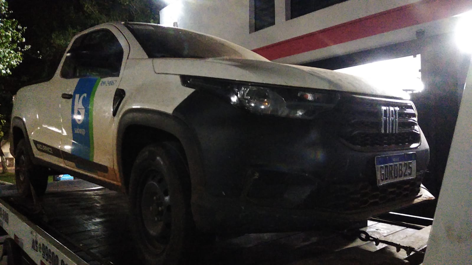Segundo informações,  o veículo Fiat Strada Adventure  é da SABESP e estava com as placas adulteras. Através do chassis, foi possível verificar que o  mesmo era furtado. O  carro foi encaminhado  para a Central de Polícia Judiciária, onde ficou à disposição da empresa.