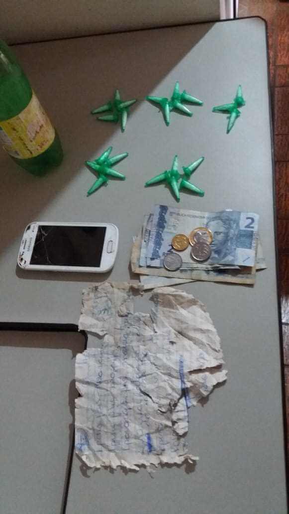 Segundo informações, a equipe avistou um indivíduo abaixado junto ao meio fio (calçada) tampando o cano de água com uma pedra. Ato continuo, a guarnição fez a abordagem junto ao indivíduo, sendo localizado em sua mão três pinos de cocaína e em seus bolsos uma quantia de R$ 13, 70.