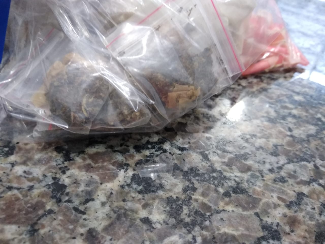 De acordo com relatos dos guardas, eles estavam em patrulhamento preventivo, quando avistaram um homem saindo de um terreno. O mesmo foi abordo e em revista pessoal localizada a quantia de oito reais. O local é conhecido como ponto de tráfico de drogas. O indivíduo disse que estava ali para comprar drogas. No terreno os GMs localizaram maconha, crack, cocaína e R$ 4,00 reais.