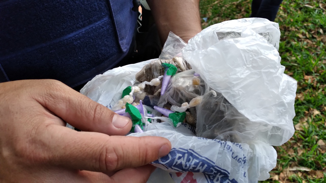 Segundo informações, a GM tinha denúncia que no local estaria ocorrendo tráfico de drogas. Foi usado um cão farejador, o qual encontrou drogas em uma sacola. Um suspeito foi detido e encaminhado ao Plantão Policial, onde foi qualificado e liberado. As drogas foram apreendidas.