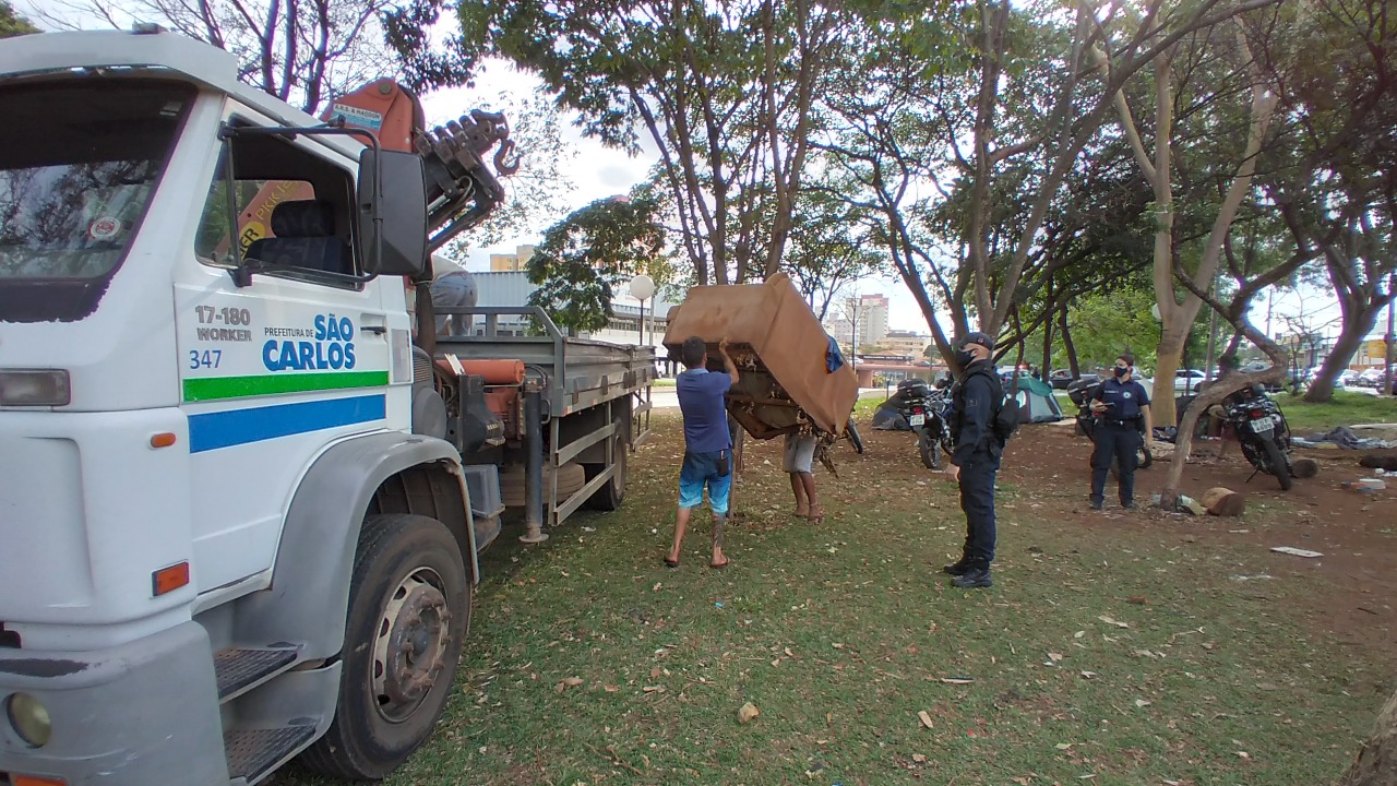 Nesta tarde de sexta-feira, 15 de outubro de 2021, a Guarda Municipal realizou uma operação na Praça defronte ao Terminal Rodoviário, São Carlos-SP, onde foram retirados sofás e nas proximidades localizados drogas.