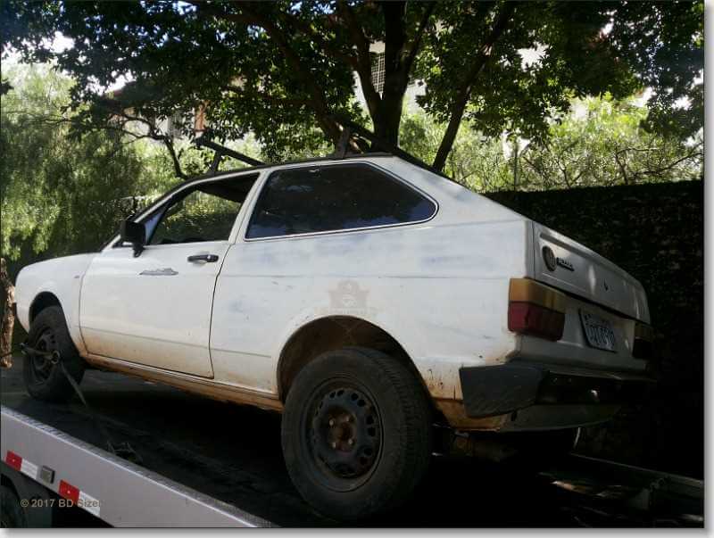 O carro foi localizado em estado de abandono em uma estrada de terra na região sul. O mesmo segundo seu proprietário, foi furtado de dentro da garagem da residência. Aparentemente estava intacto. O veículo foi encaminhado ao Plantão Policial, mas recolhido ao Pátio Municipal, pois estava em nome de uma 3º pessoa, a qual não compareceu ao Plantão Policial.