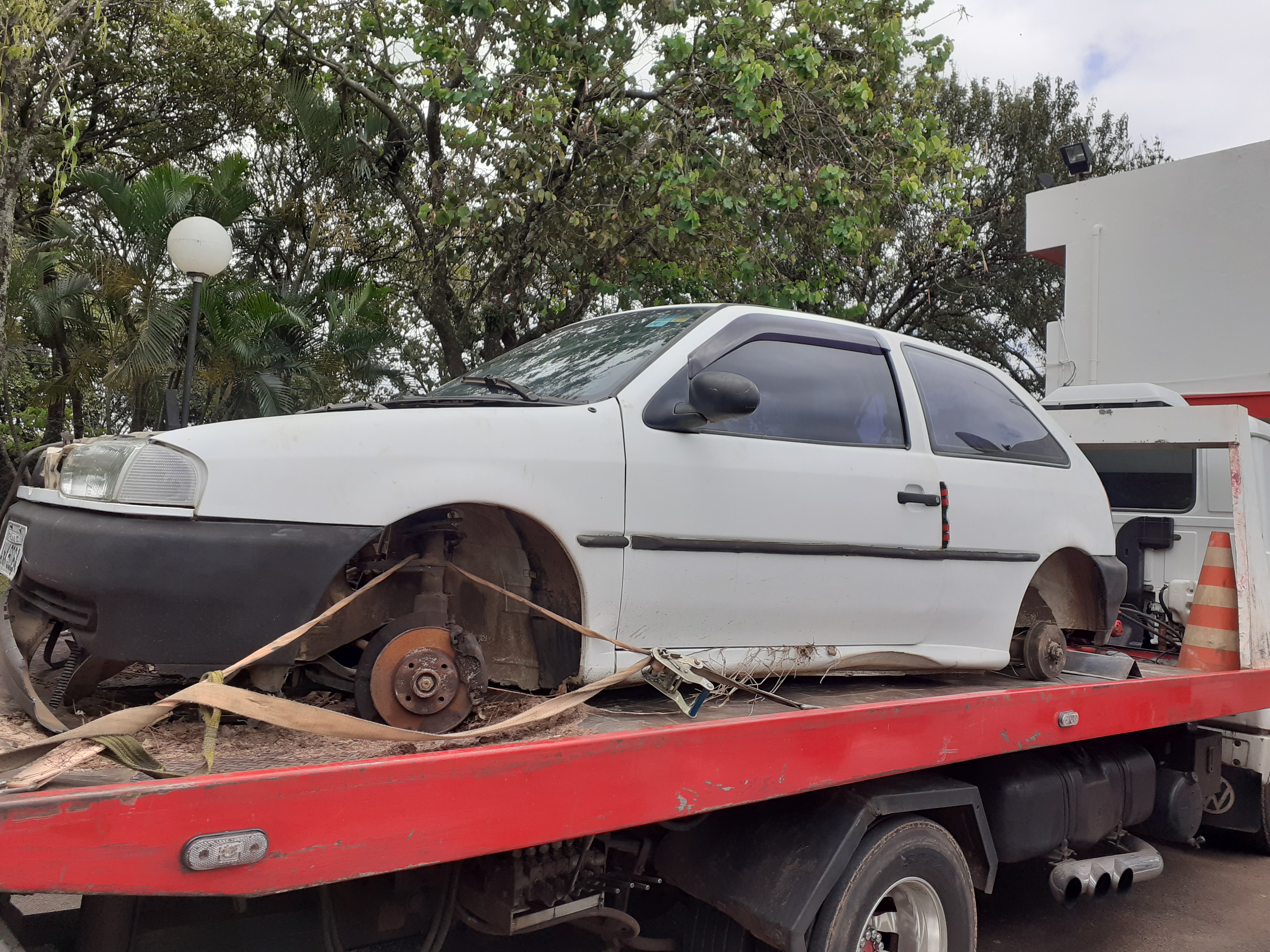 O carro com queixa de furto estava depenado e foi encaminhado ao Plantão Policial, onde ficou à disposição da vítima.