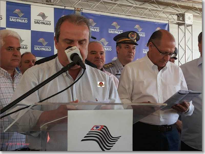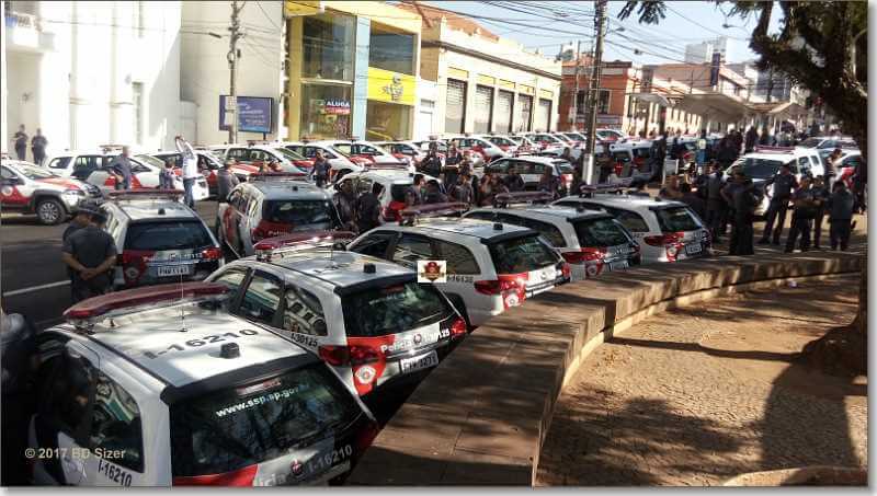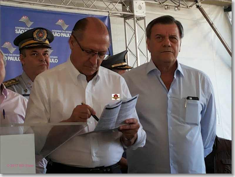 O governador do estado de São Paulo Geraldo Alckmin esteve nesta manhã de sábado, 16 de setembro de 2017, em São Carlos-SP, acompanhado do secretário de segurança pública, Magino Alves Barbosa Filho, para entregar 54 viaturas para a PM da nossa região.