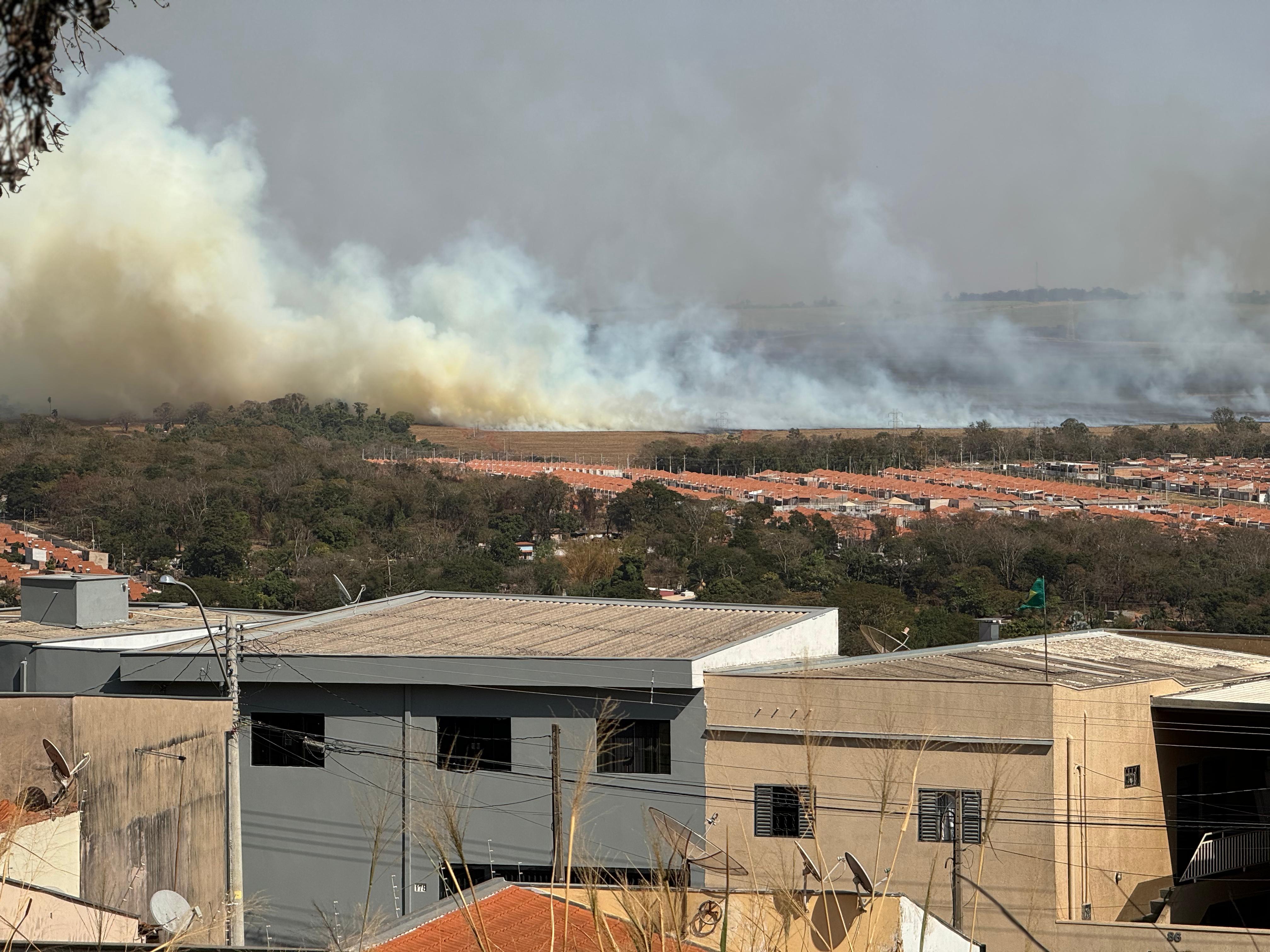Vários focos de incêndios foram registrados nesta quinta-feira, 8 de agosto de 2024, em São Carlos-SP. Um foi na região do bairro Eduardo Abdelnur. Era possível ver a fumaça de longe.