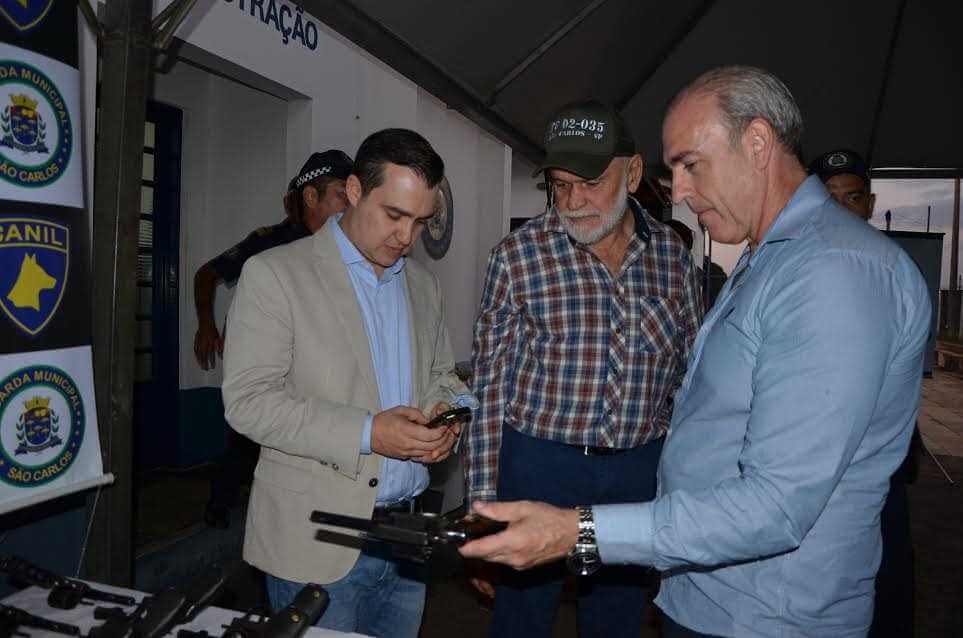 O vereador Marquinho Amaral parabenizou a GM pela conquista e disse vai indicar emenda parlamentar para a instituição. “Vamos indicar R$ 50 mil para que a Guarda Municipal possa utilizar na aquisição de peças para a recuperação de viaturas. Precisamos fortalecer cada vez mais a corporação para que continuem ajudando a prender marginais, zelando pelos órgãos públicos, recuperando veículos furtados e demais ocorrências que surgem”. Giuliano Cardinalli afirmou que iniciativa pretende melhorar as condições de trabalho dos agentes que hoje utilizam arma de choque não letal. “Tenho certeza que a ideia não é constranger e nem amedrontar a população e sim proteger”, comentou o vice- prefeito e secretário de Habitação e Desenvolvimento Urbano. O prefeito Airton Garcia agradeceu o deputado federal Luiz Lauro Filho pela ajuda para que São Carlos não perdesse as armas. Agradeço o deputado que mais uma vez está nos auxiliando e também agradeço ao prefeito Campinas, Jonas Donizette, que entendeu a nossa situação. “Ligava todos os dias para o deputado e ele nunca deixou de nós atender, com isso economizamos mais de R$ 200 mil, já que não vamos precisar comprar armamentos”. Airton lembrou também as indicações de emendas do deputado Luiz Lauro Filho para São Carlos. “Esse é nosso parceiro, expliquei a situação da Prefeitura e das dificuldades na área da saúde e ele indicou R$ 500 mil para reestruturação das unidades de saúde e para custeio e agora nos ajudou a economizar mais R$ 200 mil”, agradeceu o prefeito.
