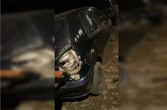 Em imagens gravadas com celular pelos próprios moradores, dois veículos aparecem crivados de balas. Vidros foram estilhaçados com os disparos, e as latarias dos carros ficaram com várias perfurações provocadas por projéteis de grosso calibre.
