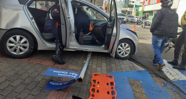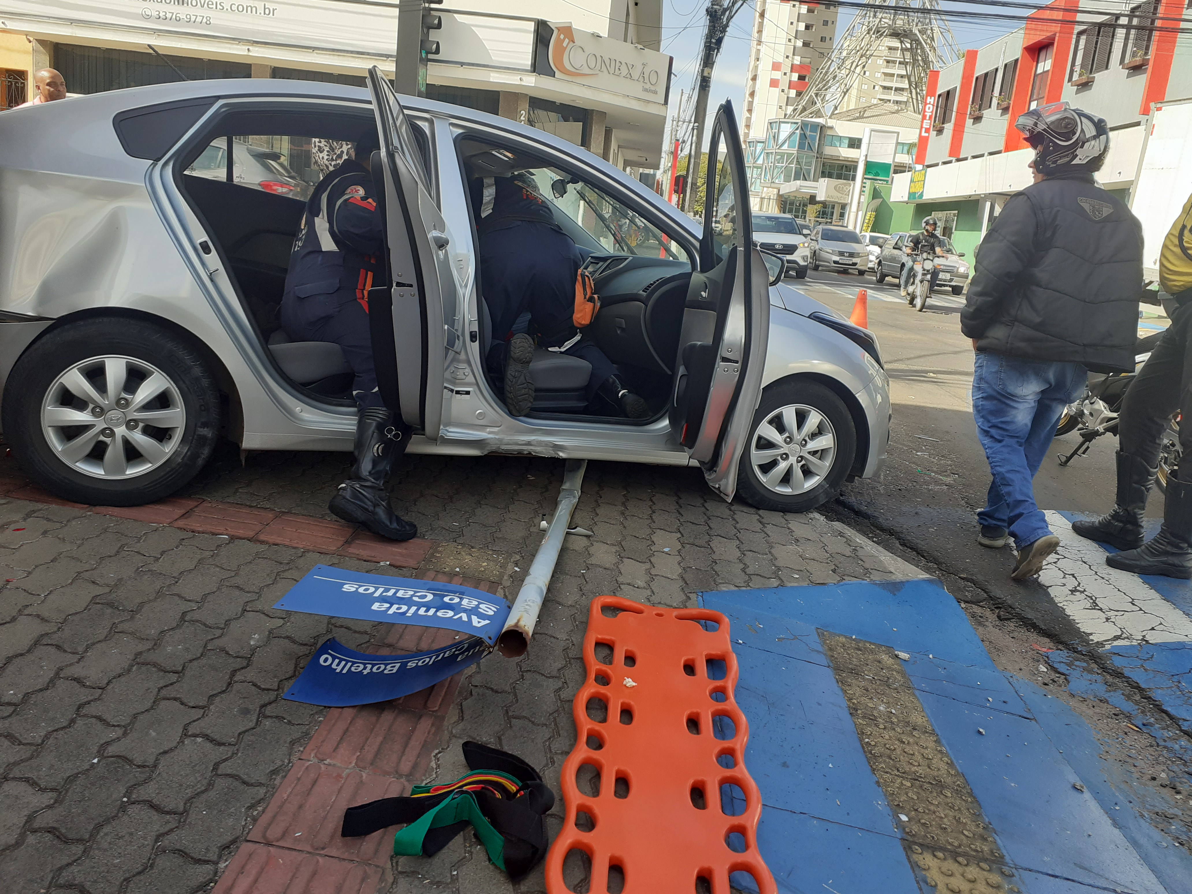 De acordo com informações, V.M.M, de 50 anos,  transitava com um veículo HB20 pela Rua Dr. Carlos Botelho, no referido  cruzamento teria sido atingida por um Onix  conduzido por E.M.G, de 24 anos, o qual estava pela Av. São Carlos e supostamente  havia avançado o sinal  vermelho. Com a batida, o HB20 subiu na calçada, derrubou uma placa de sinalização e atingiu a parede uma loja. O SAMU e Corpo de Bombeiros foram acionados e somente a mulher condutora do  HB20 ficou ferida. Sua filha de 19 anos, a  qual estava como passageira,  nada sofreu. O condutor do Onix ficou em estado de choque, mas não quis ser atendido. Uma equipe da PM e uma do Trânsito estiveram no local e tomaram as medidas cabíveis.