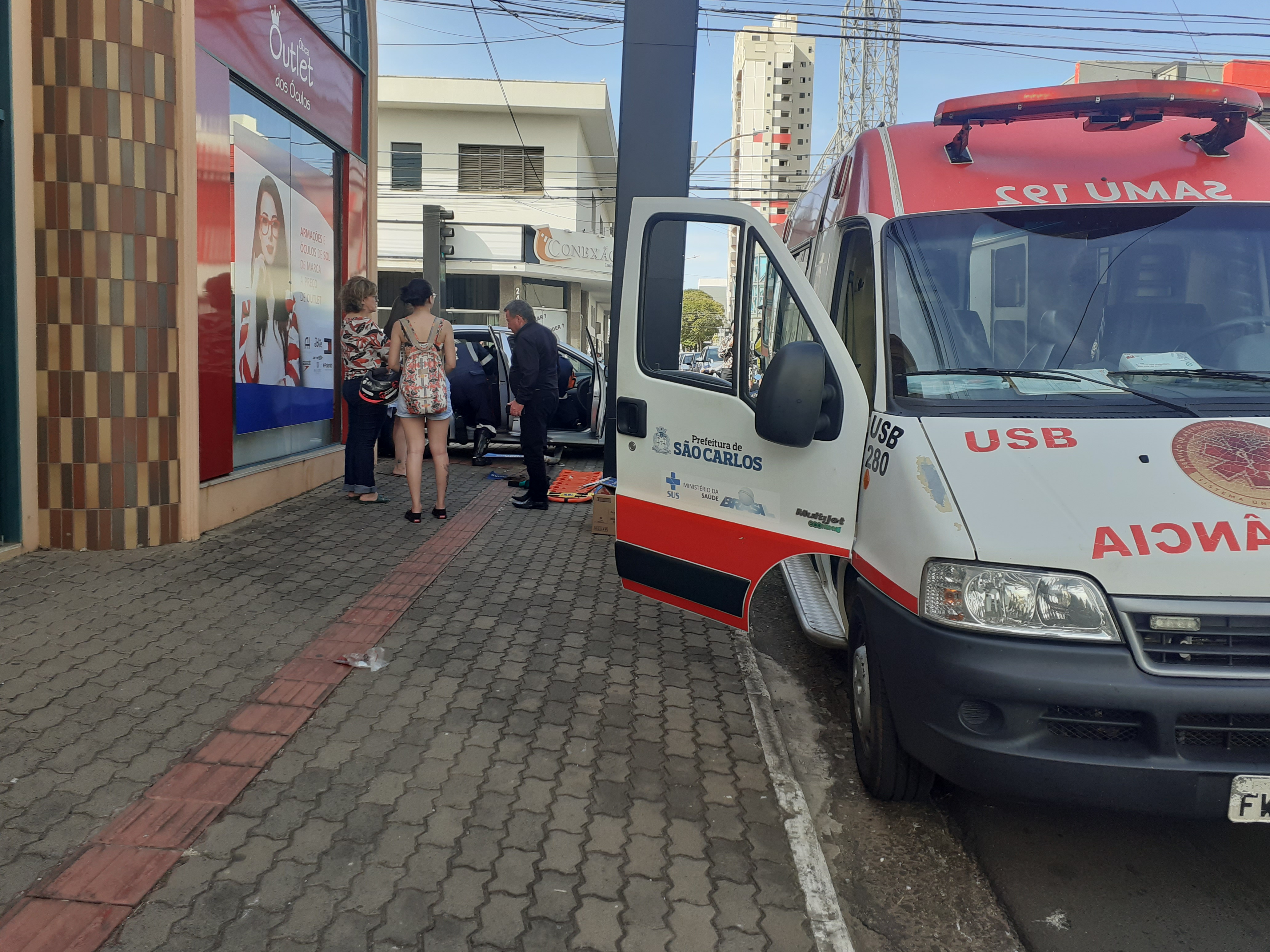 Uma senhora de 50 anos foi socorrida pelo SAMU nesta tarde de sexta-feira, 15 de julho de 2022, após se envolver em um acidente de trânsito no cruzamento da Av. São Carlos, com a Rua Dr. Carlos Botelho, Centro de São Carlos-SP.