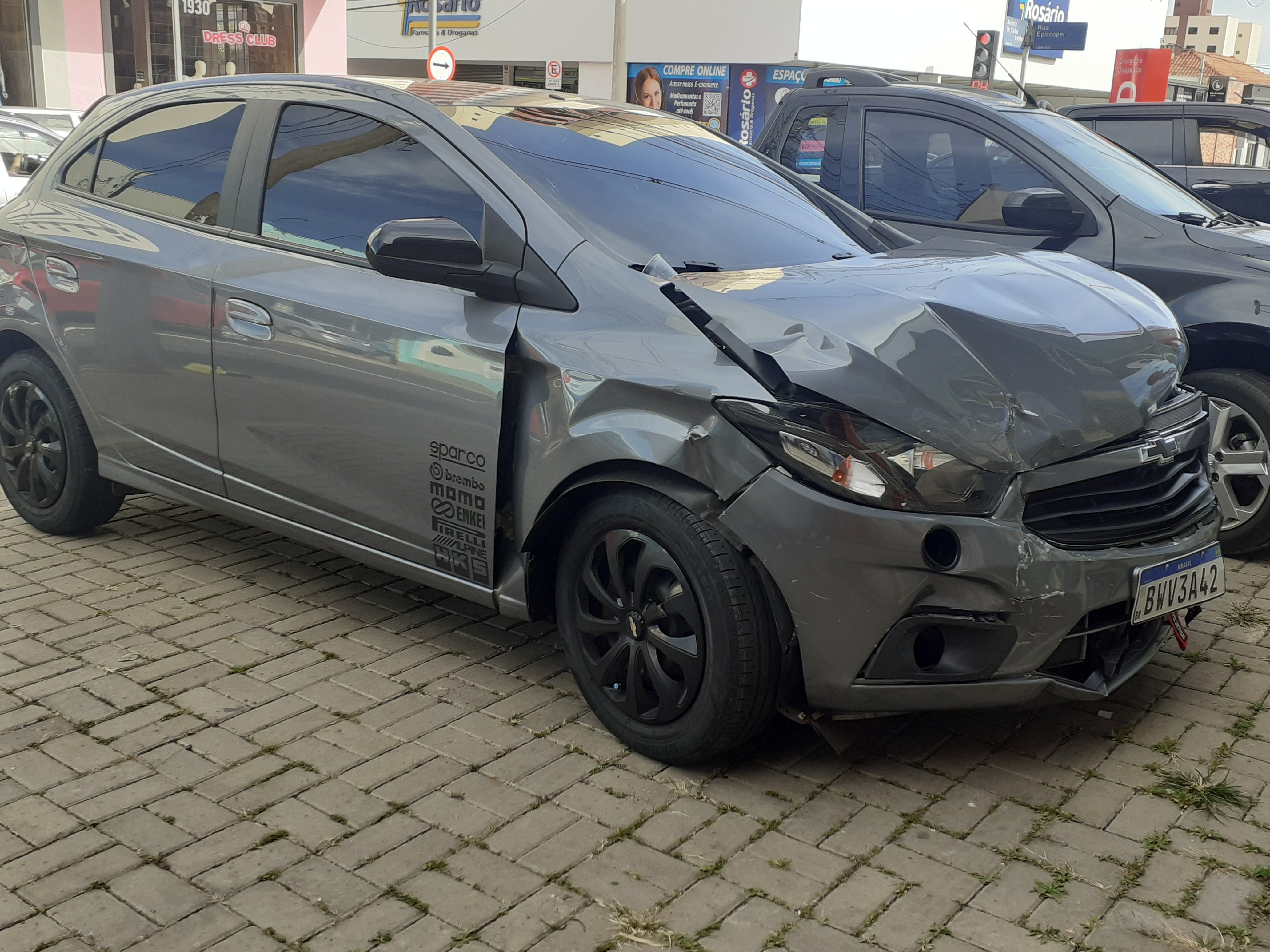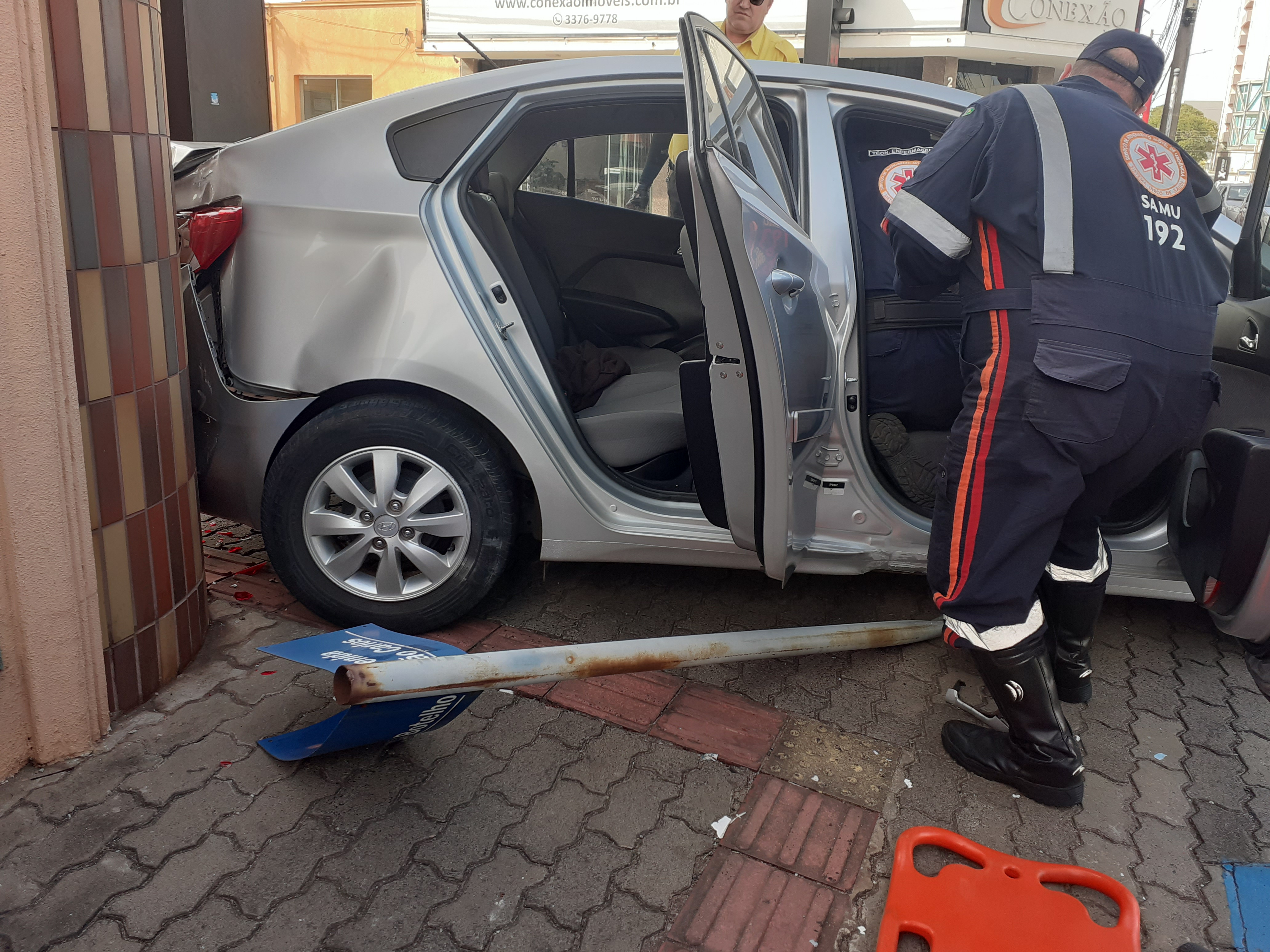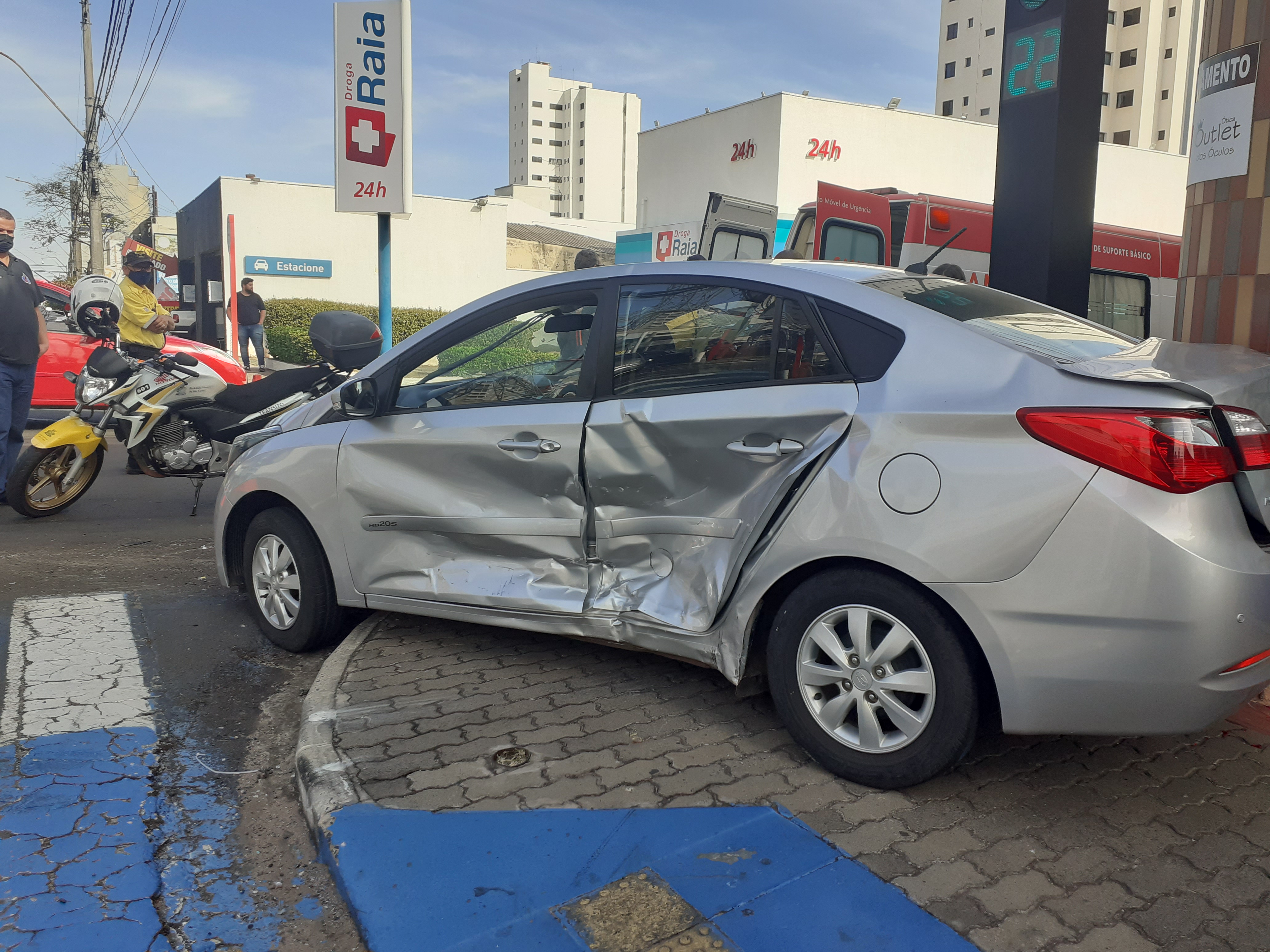 HB20 atinge parede de ótica após colisão na Av. São Carlos