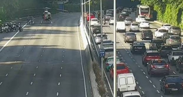 A pista da avenida 23 de Maio em direção ao centro precisou ser totalmente bloqueada para o pouso do helicóptero e permanecia assim pelo menos até 8h40.