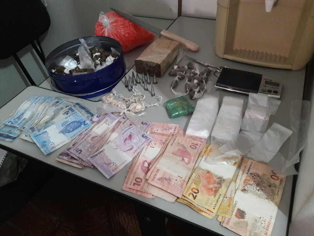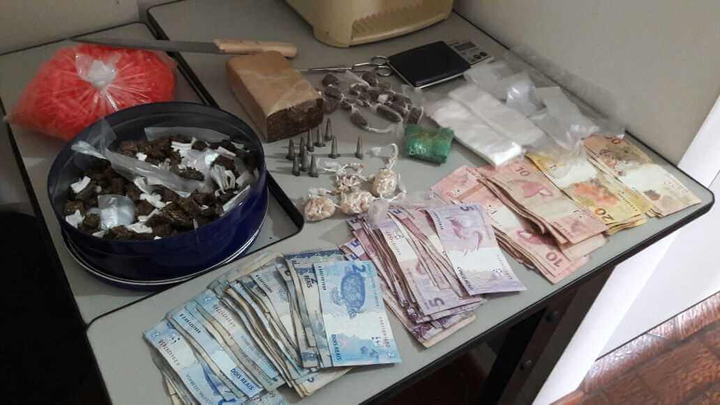 No total foram apreendidas 653 gramas de maconha , 23 de crack, 7 de cocaína, R$ 968,00 reais , uma balança de precisão, uma faca, uma tesoura e um saco com mais ou menos 1000 pinos vazios , que normalmente são usados para colocar cocaína.