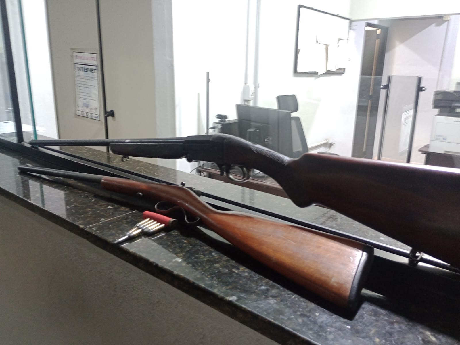 O sargento Martins e soldado J-Soares foram para o local e em contato com o sujeito, ele acabou mostrando que havia escondido as duas espingardas em um matagal nos fundos do imóvel. M.R.O.M, de 43 anos, foi encaminhado para a Central de Polícia Judiciária, autuado em flagrante e recolhido ao Centro de Triagem de São Carlos. As armas, sendo uma com numeração suprimida, ficaram apreendidas.