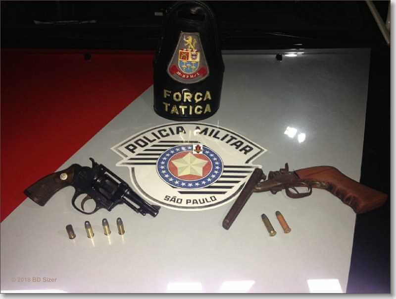 Por volta da 1:24 desta madrugada de sábado, 05-05-2018, a PM deteve um homem e apreendeu duas armas de fogo na rua Rio Quilombo, bairro Jóquei Clube, São Carlos-SP.
