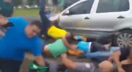Vídeos gravados pelos manifestantes perto da cena registraram o momento em que o carro, de cor prata, passou por cima de várias pessoas.