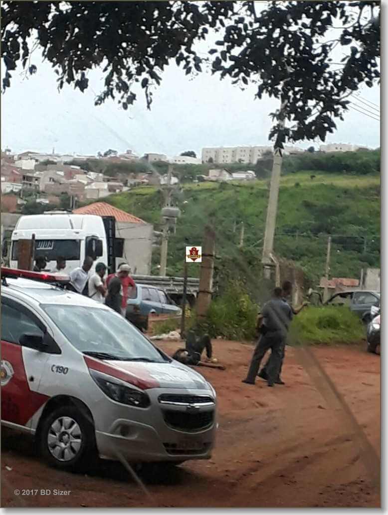 As informações se dão conta, que a vítima foi atingida pelas costas. O baleado foi encaminhado à Santa Casa, mas acabou morrendo. Um veículo Gol, supostamente usado pelos os autores do disparo de arma de fogo foi abandonado após colidir em uma cerca. Dentro deste,  foi encontrada uma réplica de  arma longa. O Capitão Paulo Nucci conversou com nosso repórter Valdir Penteado e segundo o mesmo, pode ter ocorrido um acerto de contas entre criminosos. Fato este que só as investigações podem confirmar. O homem que tem várias tatuagens pelo corpo, como palhaço, folha de maconha entre outras,  foi encaminhado à Santa Casa, mas acabou morrendo. Seu corpo será encaminhado ao IML onde deverá aguardar para ser identificado.