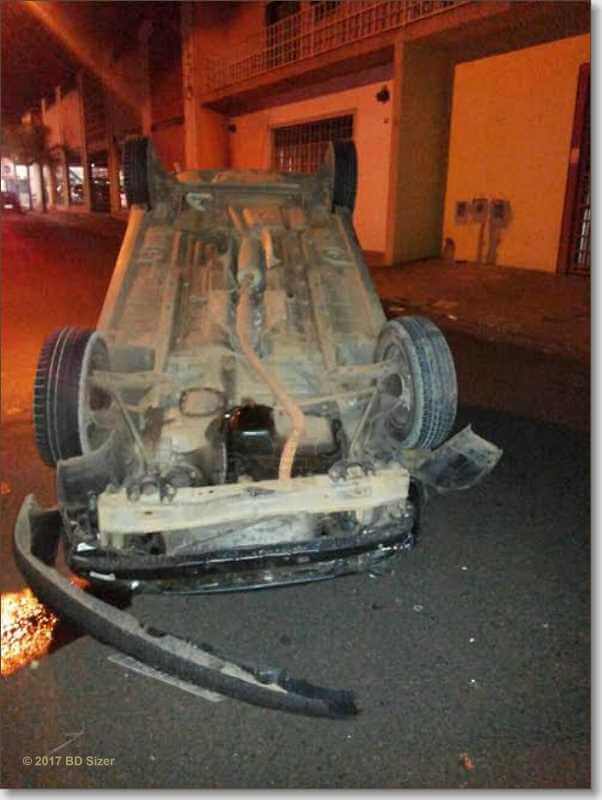 Por volta das 20:20 deste domingo, 26-03-2017, um veículo capotou após o motorista transitar na contra mão de direção e colidir seu Corsa da cor cinza, com um Nissan. O acidente ocorreu no cruzamento da Avenida São Carlos, com a rua Humberto de Campos, Lagoa Serena, São Carlos.