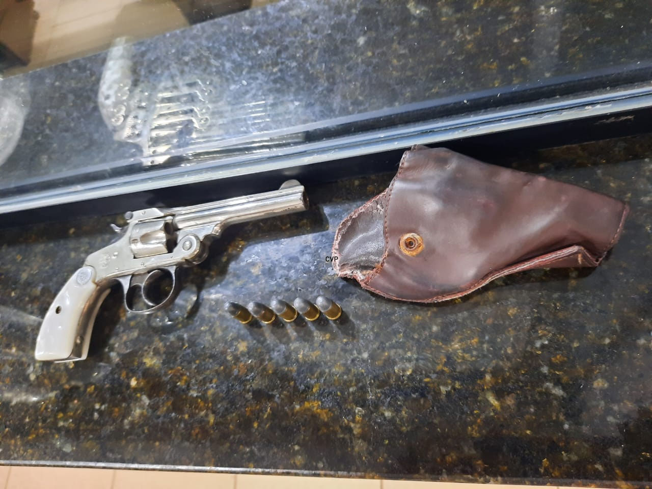 De acordo com informações, eram por volta das 6h30, a PM foi acionada para o local para atender uma desinteligência familiar. No local os policiais fizeram contato com a solicitante de 44 anos e ela disse que o casal havia discutido e o marido teria danificado a porta da sala. A mulher disse que ele havia ficado nervoso , devido ela ter saído sem ter dado ciência para ele. A mulher disse também que o tal marido tinha uma de fogo. A PM apreendeu um revólver calibre com 5 munições intactas. A ocorrência foi encaminhada para a Central de Polícia Judiciária, onde o marido foi autuado em flagrante, mas colocado em liberdade.