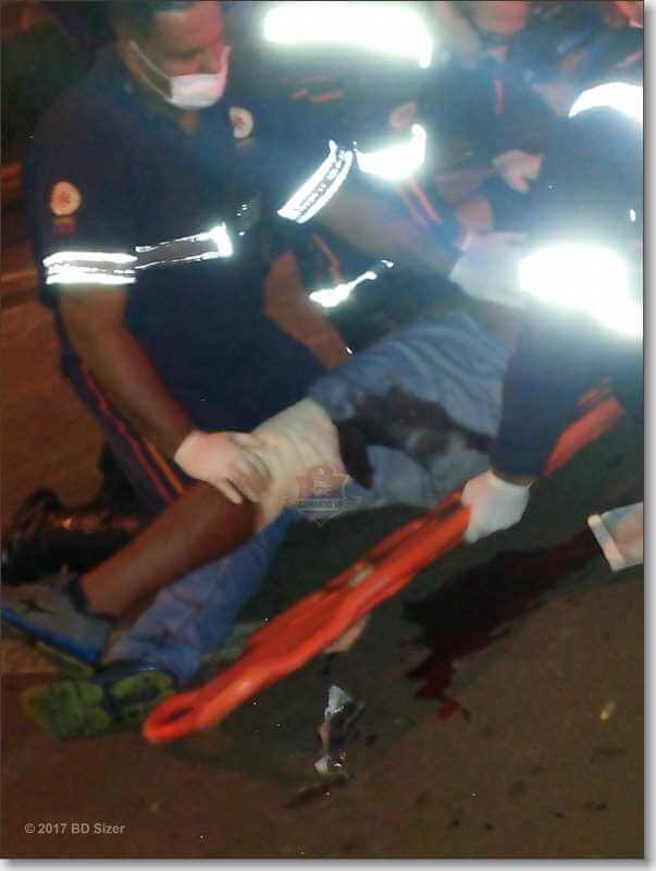 Segundo informações, eram por volta das 20:30 desta quinta-feira, 04-05-2017, clientes do bar, por motivos desconhecidos começaram a brigar. Um dos indivíduos adentrou em sua caminhonete Amarok da cor prata, placas de São Carlos e deu marcha ré para atropelar seus desafetos, mas acabou atropelando um motoboy que passava pelo local e não tinha nada a ver com a confusão. O trabalhador identificado como Maicon Henrique, de 25 anos, sofreu um corte profundo na perna e foi socorrido pela Unidade de Suporte Avançado (USA) do SAMU e foi encaminhado à Santa Casa, onde permaneceu internado.