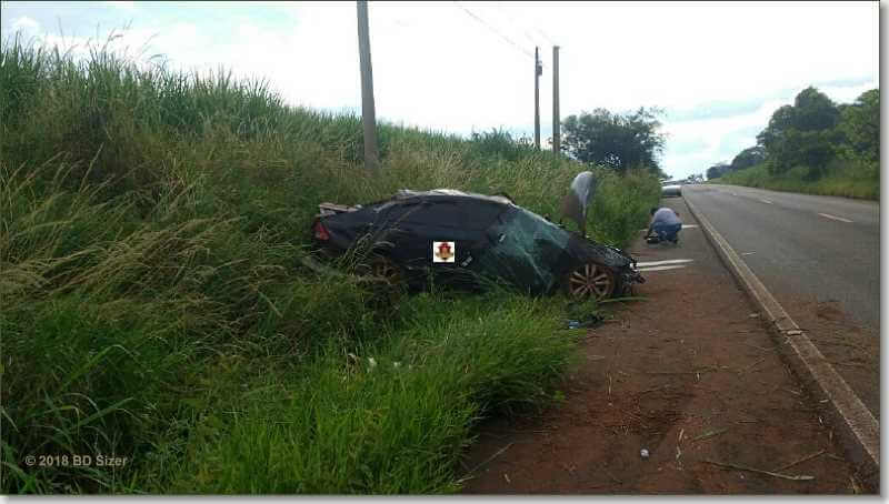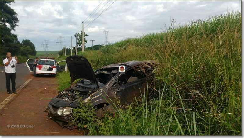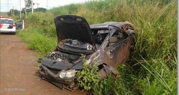 O carro saiu da pista, entrou no gramado e capotou por cerca de 150 metros.