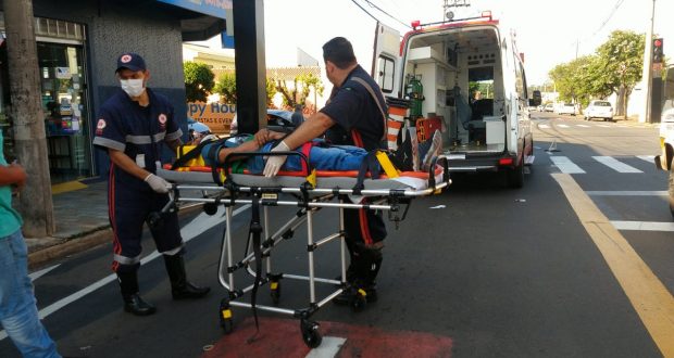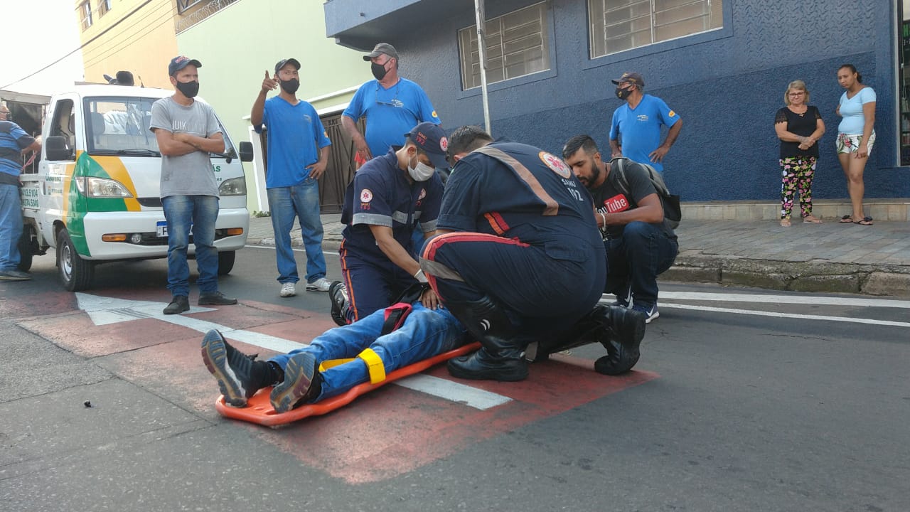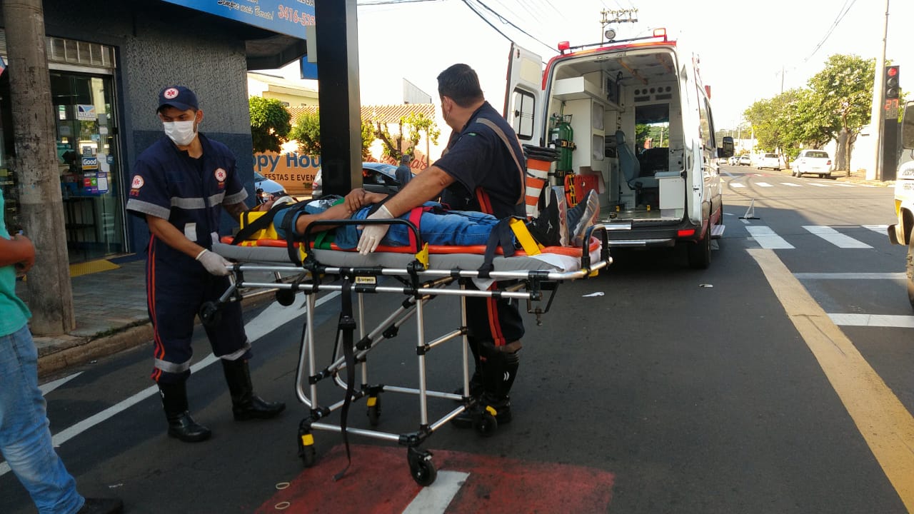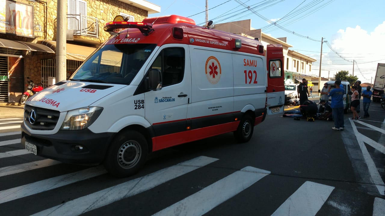 Um homem de 38 anos foi socorrido pelo SAMU nesta tarde de sexta-feira, 16 de abril de 2021, após se envolver em um acidente de trânsito na Rua Papa Paulo VI, região do bairro Jd.  Cruzeiro do Sul, São Carlos-SP.