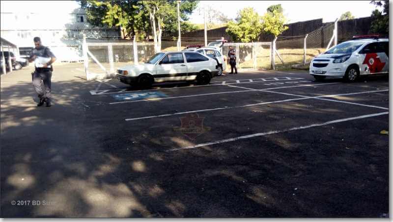 Um homem suspeito de dirigir embriagado foi detido pela PM nesta tarde de domingo, 18-06-2017, após colidir um veículo Palio no muro    de uma residência na rua Totó Leite, São Carlos-SP.