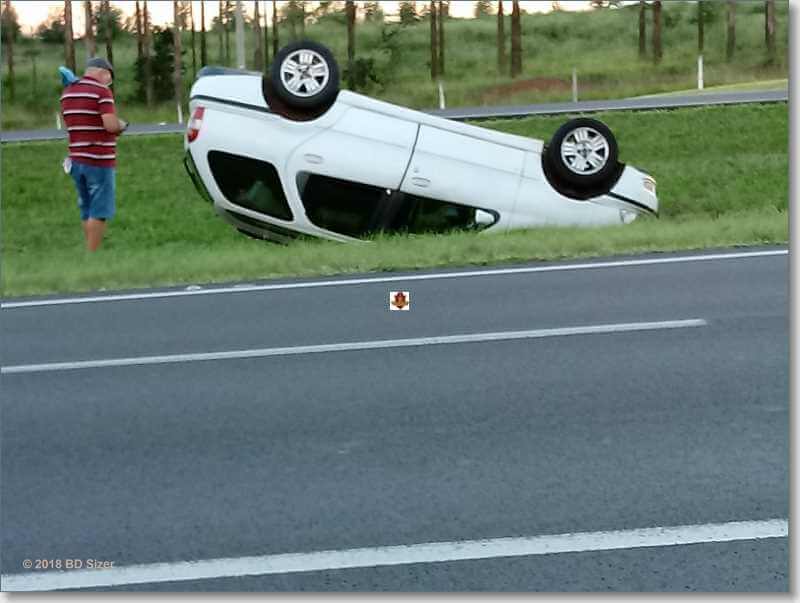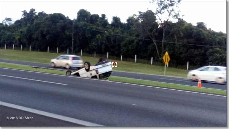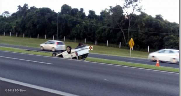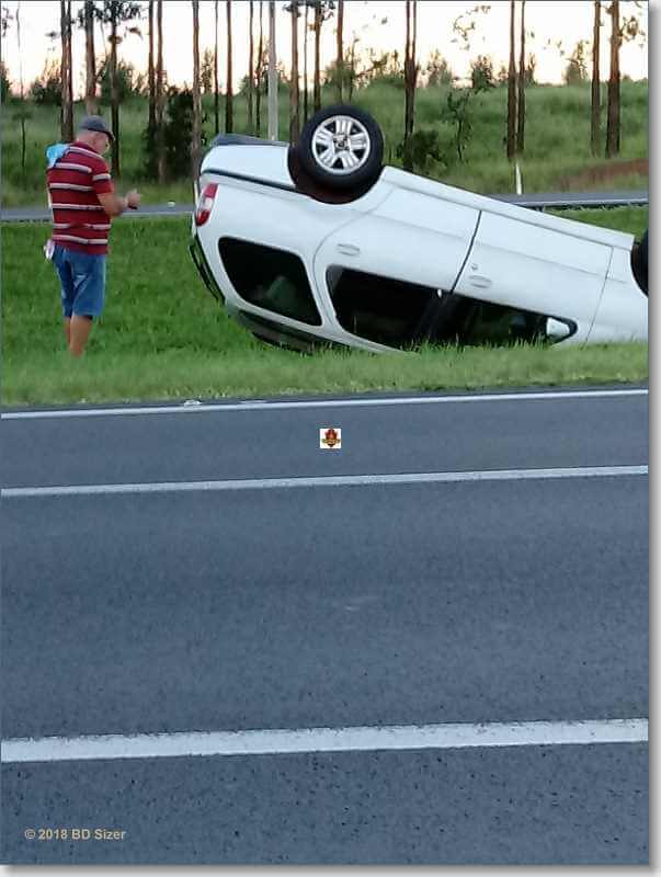 Seu Luiz Henrique, de 59 anos, estava com seu Palio da cor branca, placas de Campinas-SP, no sentido interior/capital, perdeu o controle da direção e capotou. O carro foi parar no canteiro central da rodovia. A Polícia Militar Rodoviária e a equipe de socorro estiveram no local, mas o mesmo dispensou atendimento alegando estar bem. Ele aparentemente sofreu apenas escoriações no braço. Disse que dormiu ao volante.