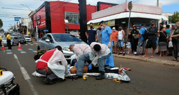 Segundo informações, o veículo transitava pela Avenida São Carlos, no referido cruzamento, o senhor teria tentado atravessar a avenida, porém não teria tomado as devidas cautelas. O Corpo de Bombeiros foi acionado e socorreu a vítima para Santa Casa.  Aparentemente com ferimentos leves.