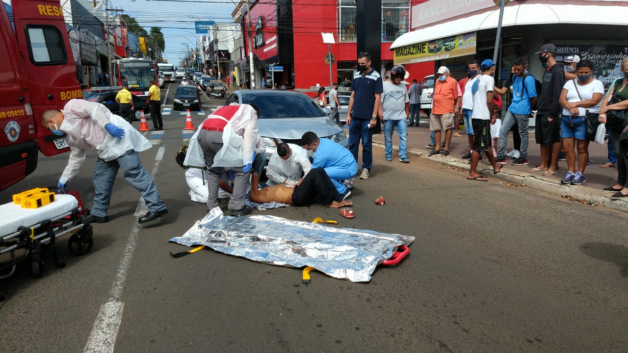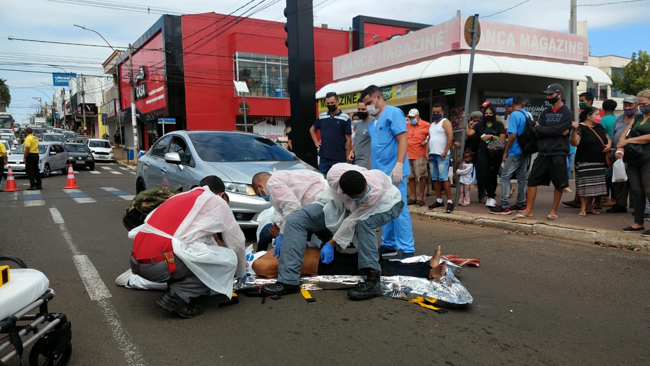 Um senhor de 63 anos foi atropelado por um carro nesta manhã de terça-feira, 27 de abril de 2021, na Avenida São Carlos, cruzamento com a Rua Geminiano Costa, Centro de São Carlos-SP.