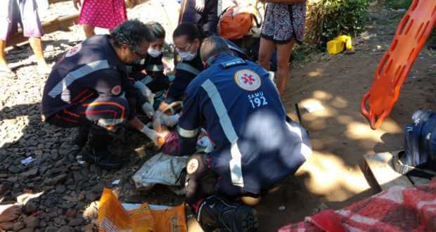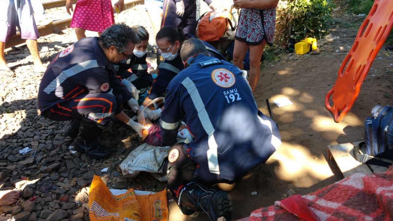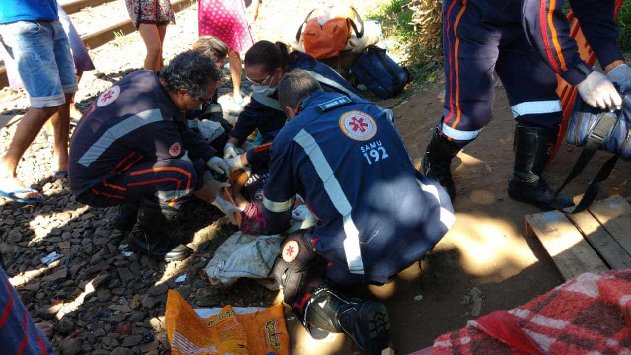 Segundo informações, a vitima andava as margens da linha férrea quando foi atingida . O SAMU foi acionado e encaminhou o mesmo à Santa Casa com fraturas .