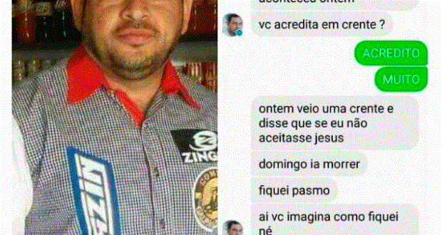 O suposto aviso divino foi compartilhado por Lindomar com uma amiga em uma conversa privada no Facebook. “Ontem veio uma crente e disse que se eu não aceitasse Jesus, domingo ia morrer”, diz ele à amiga. Em seguida, Lindomar completa: “fiquei pasmo”.