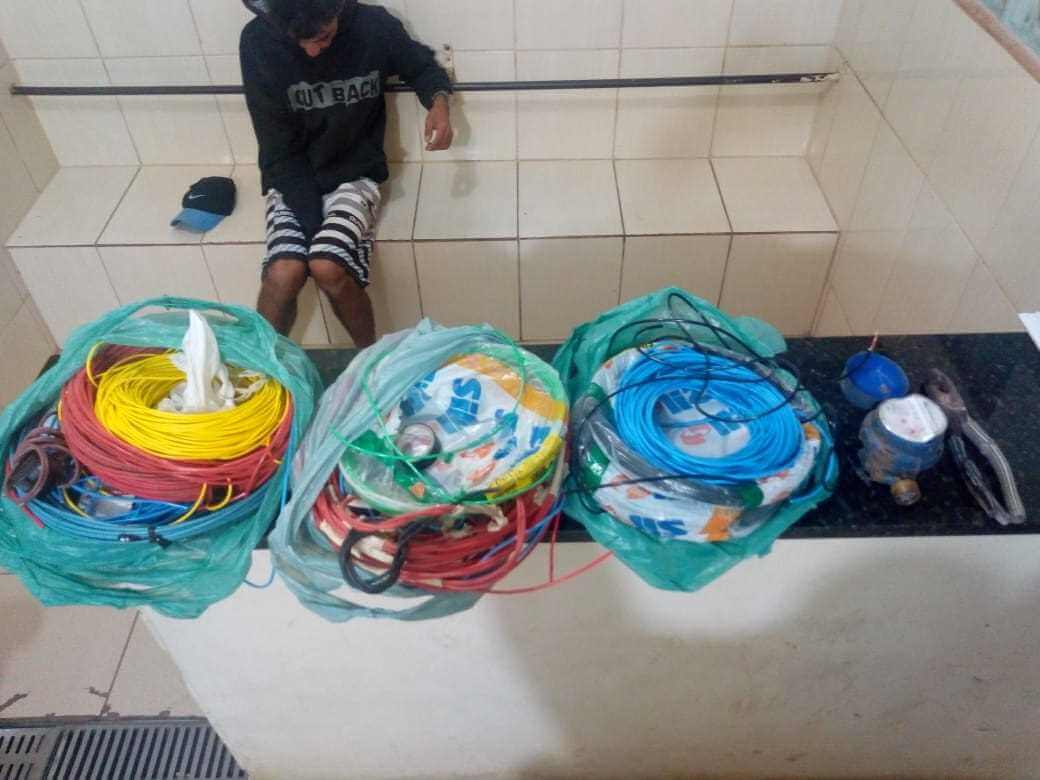 Que ao ser abordado foi constatado que tratava-se de fios elétricos, torneira, hidrômetro e um alicate.