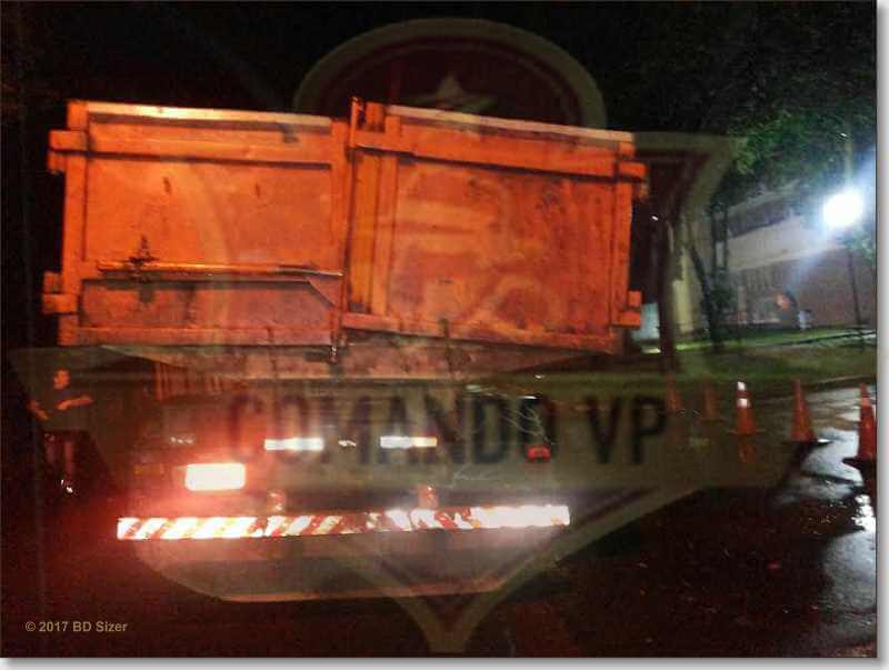 Segundo boletim de ocorrência, eram por volta das 2:00, os policiais Corucci e Estival tomaram conhecimento que um caminhão roubado estava pela referida rodovia. Os policiais saíram em patrulhamento e avistaram o caminhão no sentido contrário. Eles fizeram o retorno e deram inicio ao acompanhamento. O motorista percebeu que estava sendo seguido pela polícia, passou no canteiro central, adentrou na contramão de direção, em um dado momento pulou do veículo em andamento e fugiu tomando sentido ao bairro Embaré. O caminhão só parou após colidir na defensa metálica. Os policiais acabaram detendo o sujeito, o qual confessou que ganharia mil reais para levar o caminhão até São José do Rio Preto. As placas que ostentavam no caminhão não eram as suas originais. Atrás do chassi os policiais confirmaram que o caminhão havia sido roubado no dia 05-01-2017 na cidade Arauja, região de Guarulhos-SP. Carlos foi encaminhado ao Plantão Policial, autuado em flagrante por receptação e recolhido ao Centro de Triagem de São Carlos, pois não pagou cinco mil reais de fiança estipulada pelo delegado de plantão.